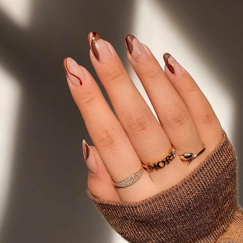 บนพื้นเล็บเรียบๆ เติมเส้นโค้ง เส้นขีดบางๆ ด้วยสีทองหรือเงิน เพิ่มความเงาหรูหราได้แบบไม่ดูเยอะ