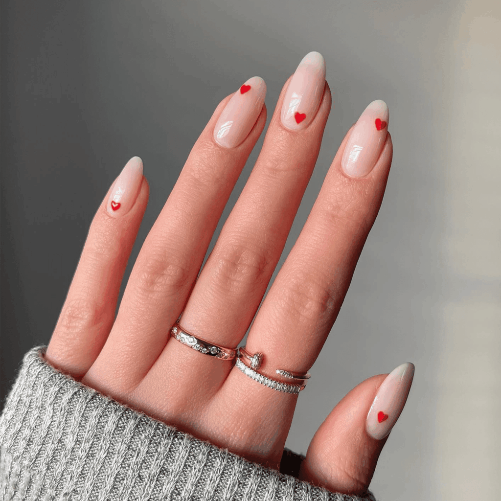 ใช้พื้นสีใสหรือสีพาสเทล แล้วแต้มลายจุด ลายหัวใจ หรือดวงดาวขนาดเล็ก ดูน่ารัก สะอาดตา และไม่รกสายตา เหมาะกับมือเล็กๆ
